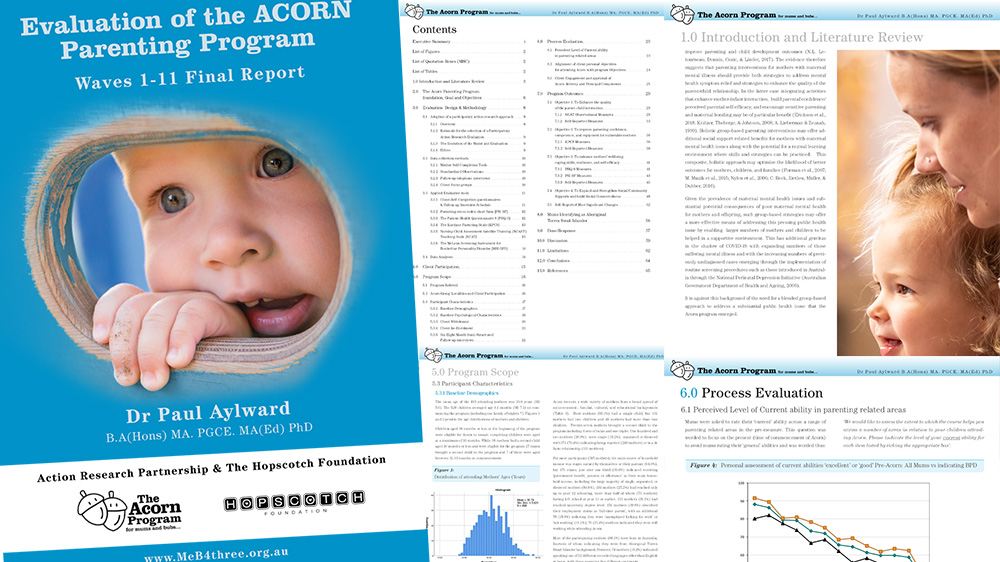 - For a detailed evaluation of Acorn Parenting Program by Dr Paul Aylward B.A (Hons) MA. PGCE. MA(Ed) PhD assembled in a 72 page book, please click on the image.