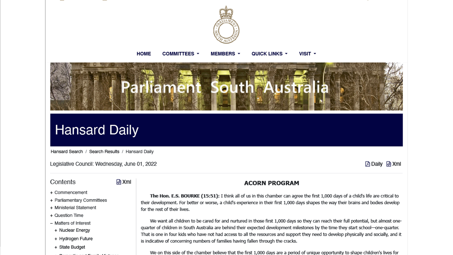 Hon Emily Bourke - Speech on the Acorn Program