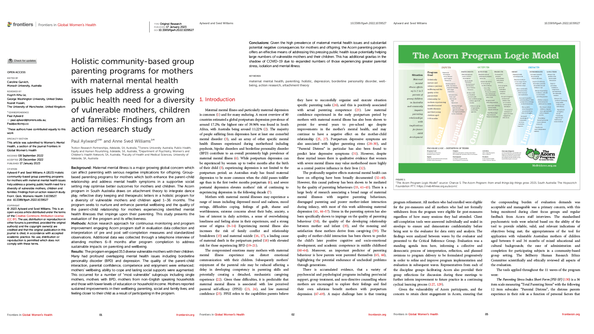- For a detailed Economic Evaluation Outcomes from the Acorn Parenting Program by Dr Tim Schulz(1) and Dr Paul Aylward(2), please click on the image (1)Senior Research Fellow, Flinders Health and Medical Research Foundation, Flinders University (2) Principal - Action Research Partnerships/Senior Research Teaching Fellow.